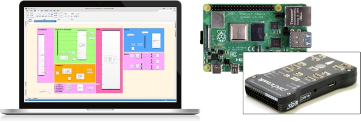 本平台是集教学与科研目的为一体的多功能实验台,其在满足日常学生教学实验的同时,兼顾无人机飞行控制及力学等学科专业的科学研究,还可以基于反射内存网通讯进行编队半实物的扩展。平台主要由系统建模仿真环境、实时仿真系统、三轴仿真转台、三维飞行视景系统、遥控器和飞控板组成。
