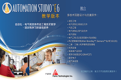 FamicTechnologiesInc.成立于1986年,发密科AutomationStudio™是一个为了满足技术教学和培训需要而设计的独特的软件解决方案,并且已经用于全世界成千上万的学校,它使得设计、动画、仿真和分析能在通用的、友好的环境中直观地进行。